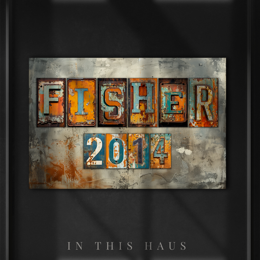 Custom License Plate Canvas | Fisher Industrial Rustic Design