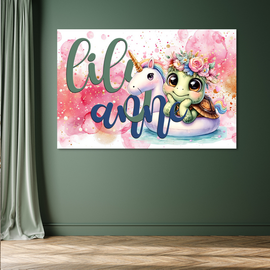 Personalized Kids Print| Lily Anne Unicorn and Turtle Design